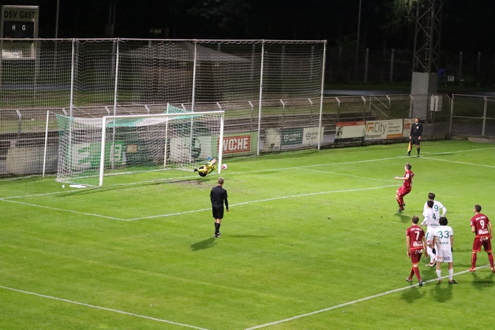 DSV-Goalie Admir Peckovic fängt einen Kopfball von Raphael Kniewallner ab (9.).