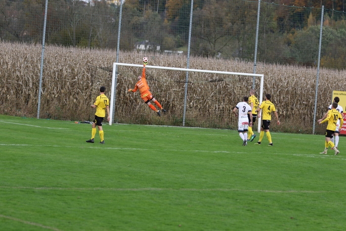 ...Goalie Daniel Stoiser hechtet den Ball über die Querlatte (24.).