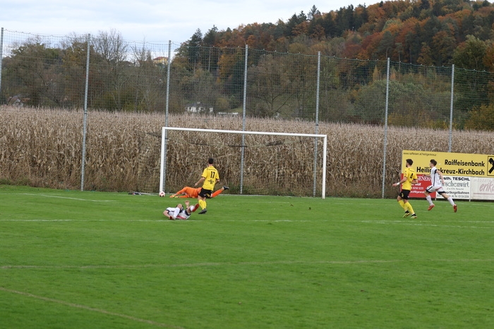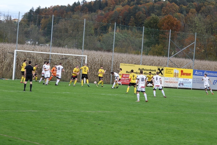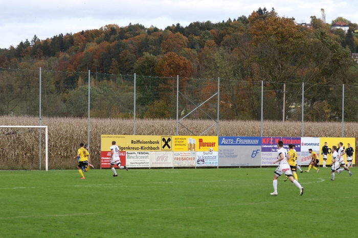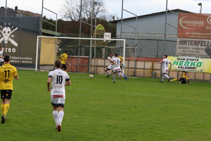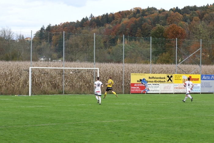 Nach Flanke von Patrick Unterkircher trifft Johannes Driesner (rechts) nur das Außennetz (76.).