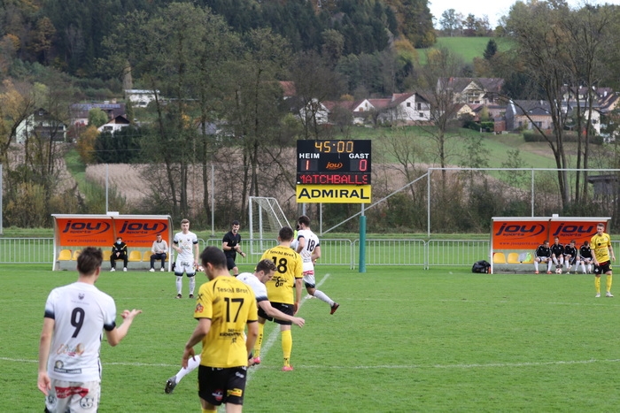 Eine halbe Stunde lang diktierten die Gnaser das Spielgeschehen, es wurden zahlreiche Chancen vergeben. Wohlmuth, Kniewallner, Wagist und Strohmaier brachten das Leder nicht im gegnerischen Tor unter. Wohl auch, weil Torhüter Daniel Stoiser einen Glanztag erwischt hatte. Mit der zweiten Chance im Spiel gingen die Hausherren durch Patrick Wiesenhofer in der 39. Minute mit 1:0 in Führung. Mohsenzada und Jury fanden weitere Möglichkeiten im ersten Spielabschnitt vor.