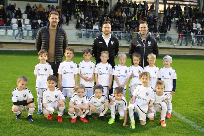 In der Halbzeitpause wurden der Gnaser U7-Mannschft neue Dressen von den Firmen TF Haustec und Ofenstudion Baumgartner übergeben.