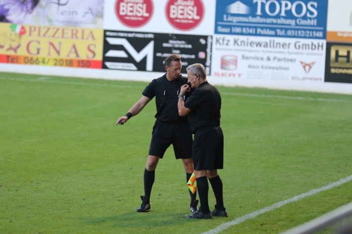Nach Befragung des Assistenten entscheidet SR Kressl auf Tor für Judenburg.