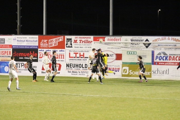 550 Zuseher sahen ein schnelles und sehr kampfbetontes Spiel, indem die Gäste anfangs sehr tief standen und erst mit dem Führungstreffer der Gnaser in der 17. Minute aufmachten. Nach einem weiten Einwurf von Matthias Schadler besorgte Daniel Zimmermann per Kopf den Führungstreffer zum 1:0. Durch sporadische Gegenangriffe kamen auch die Gäste zu Chancen, so konnte Torhüter Michael Sammer in der 31. Minute einen Kopfball abwehren. Aus einem Eckball durch Matthias Schadler fiel durch Verteidiger Tobias Kölli in der 29. Minute das 2:0. Pausenstand 2:0.