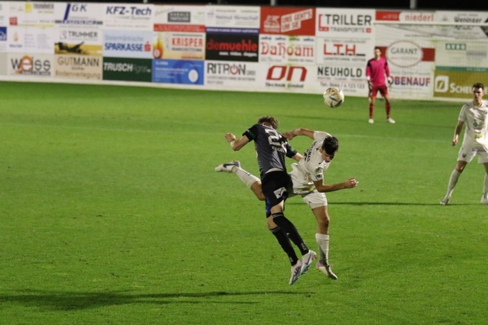 Nach einer Flanke von der linken Seite köpfelt Alexander Pieber (Nr. 44) das Leder knapp am Tor von Alex Roth vorbei (31.).