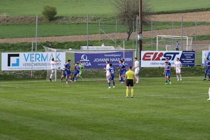 Leo Kaufmann (links) köpfelt einen Eckball an die Querlatte (21.).